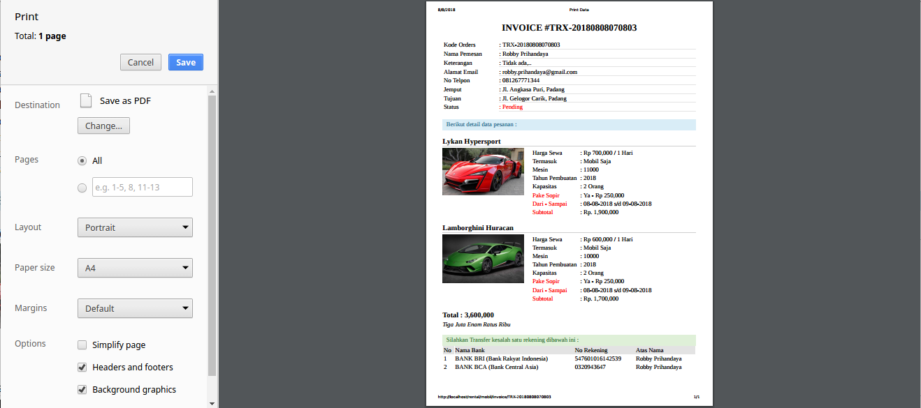 2. Support dengan Banyak No Rekening (Pembayaran Pemesanan Online)
